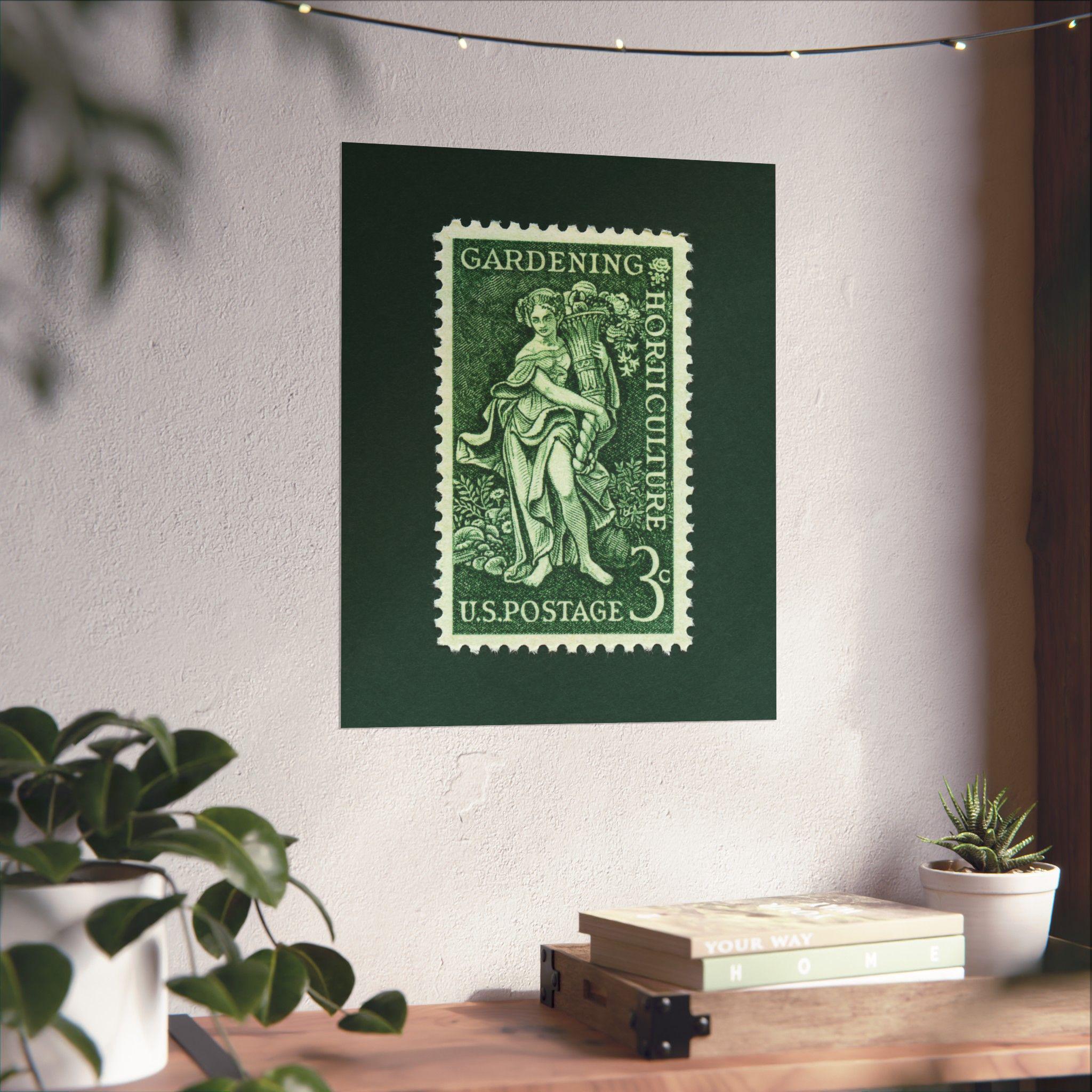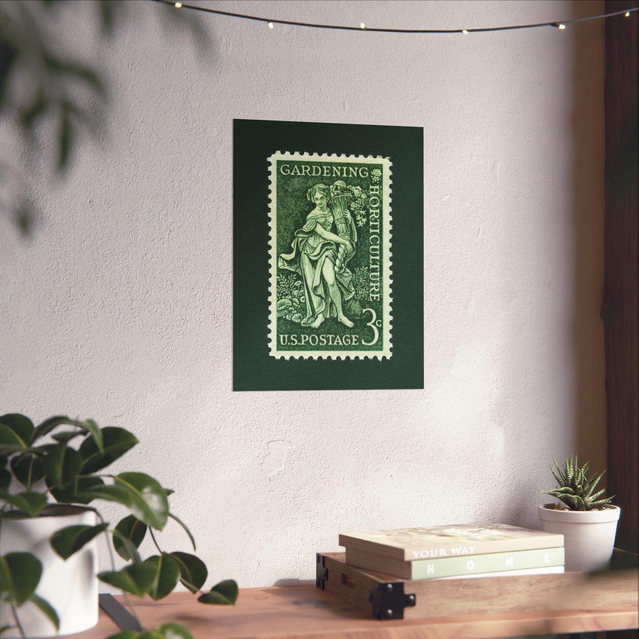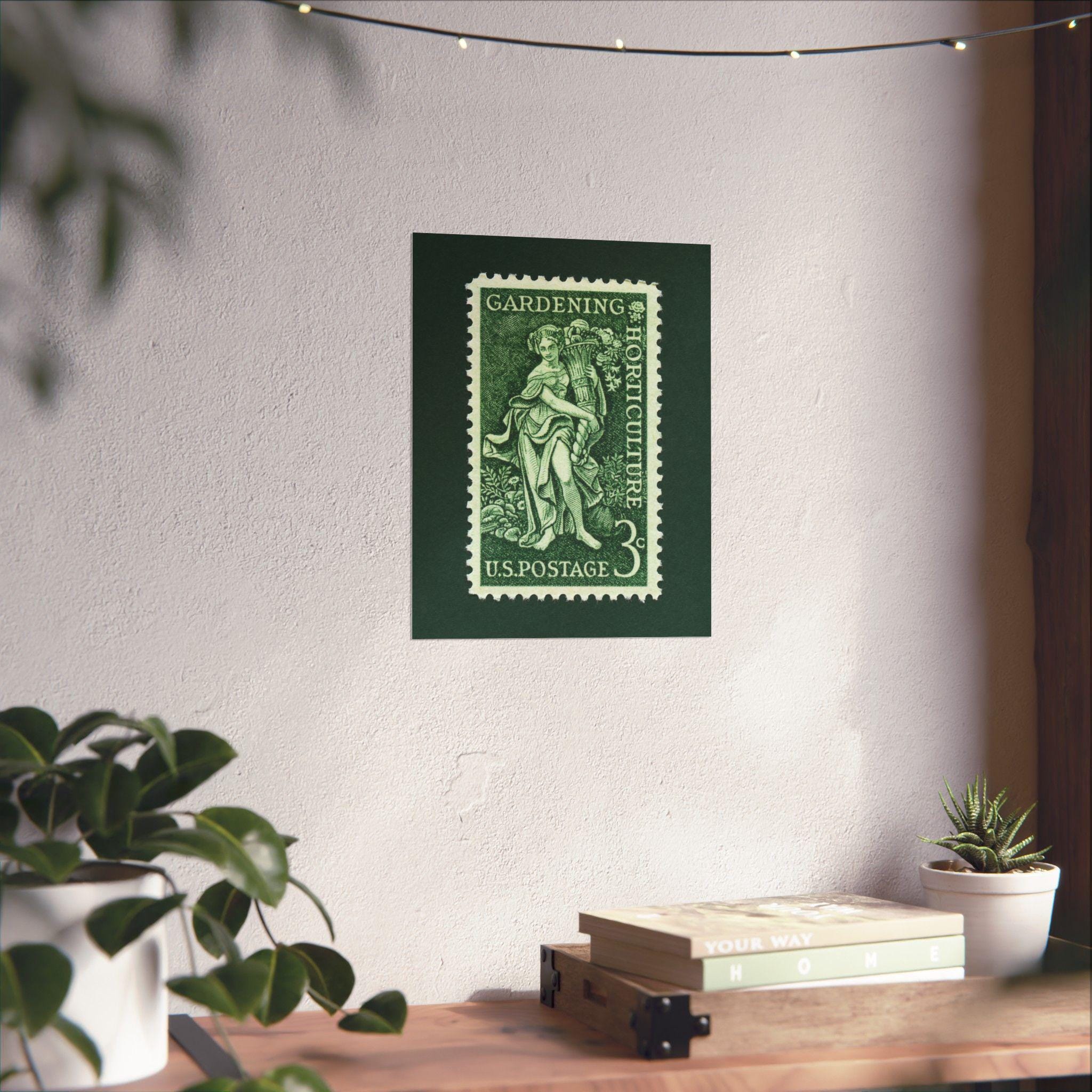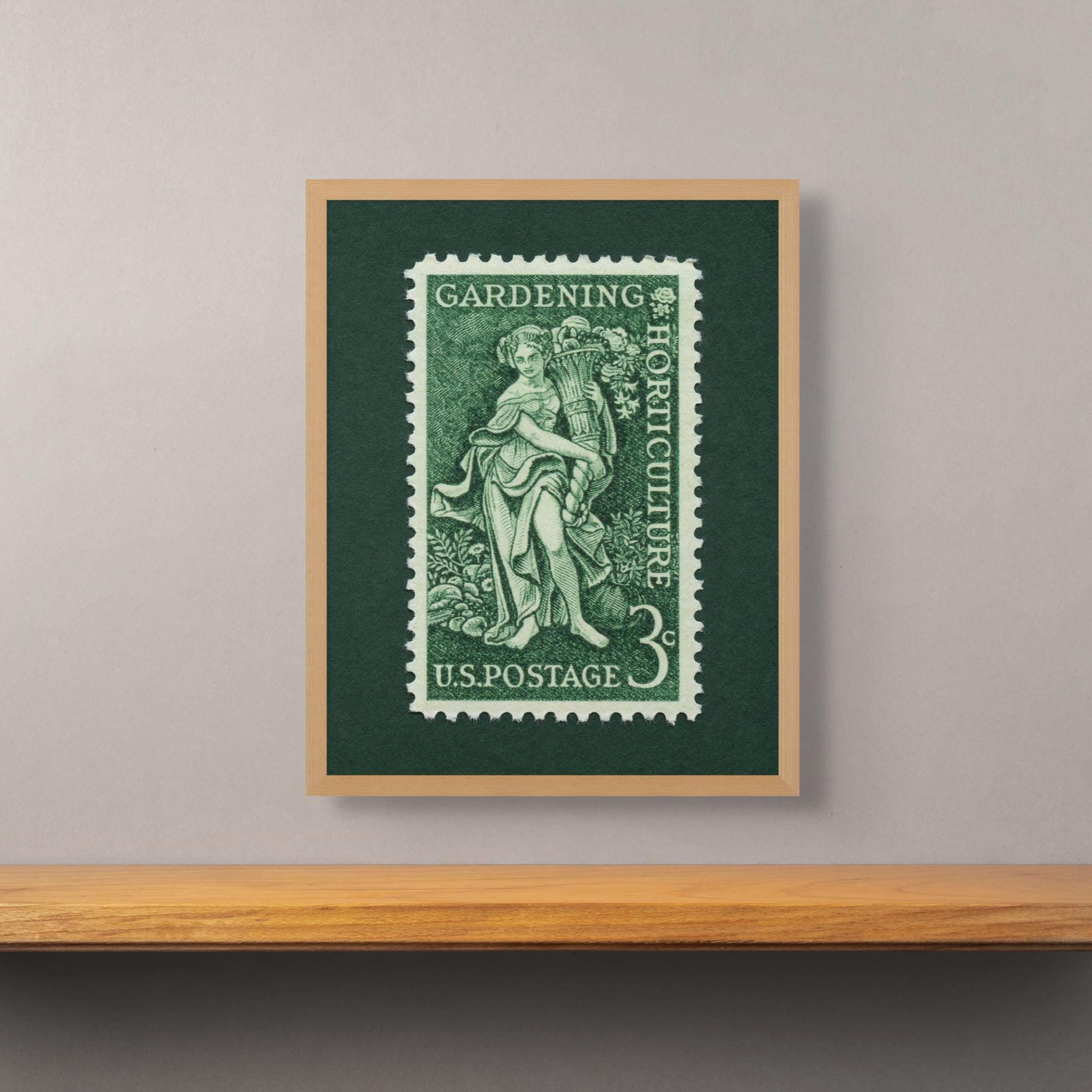 Each stamp print is created with archival inks and museum-quality fine art paper for a high quality and long-lasting look. The print is created with actual physical stamps that have been scanned at a very high resolution while carefully removing any blemishes. The background color of each stamp is carefully selected to create a beautiful wall display.