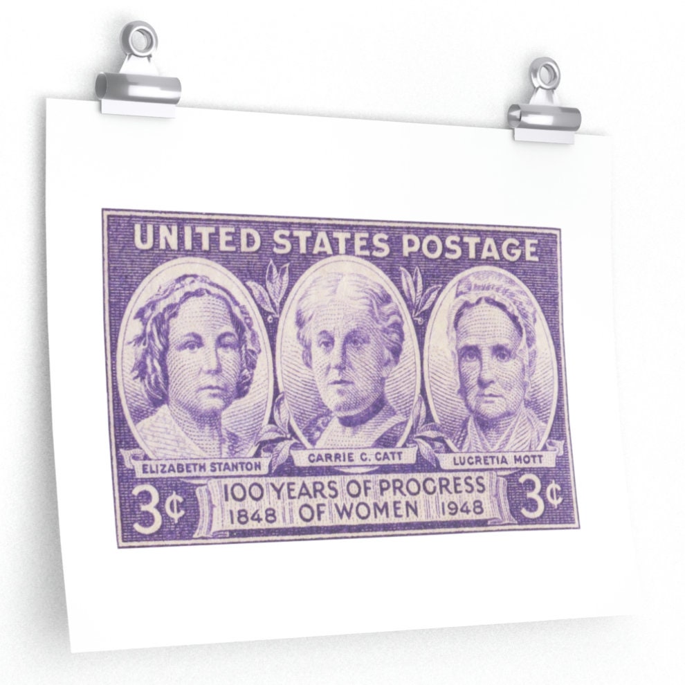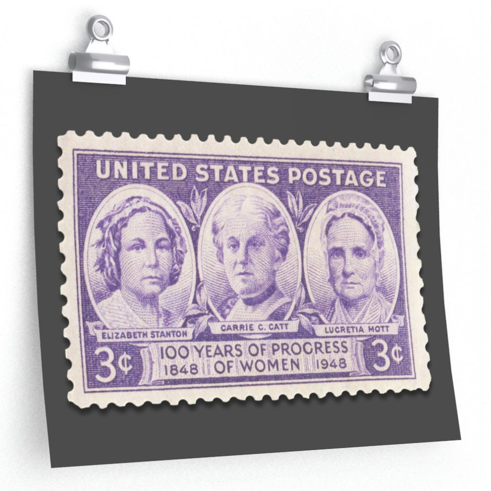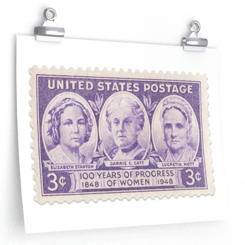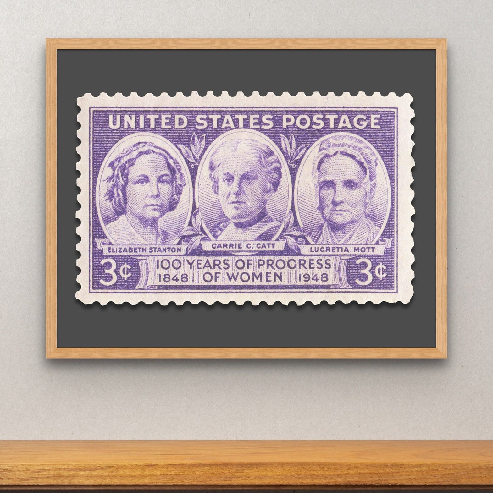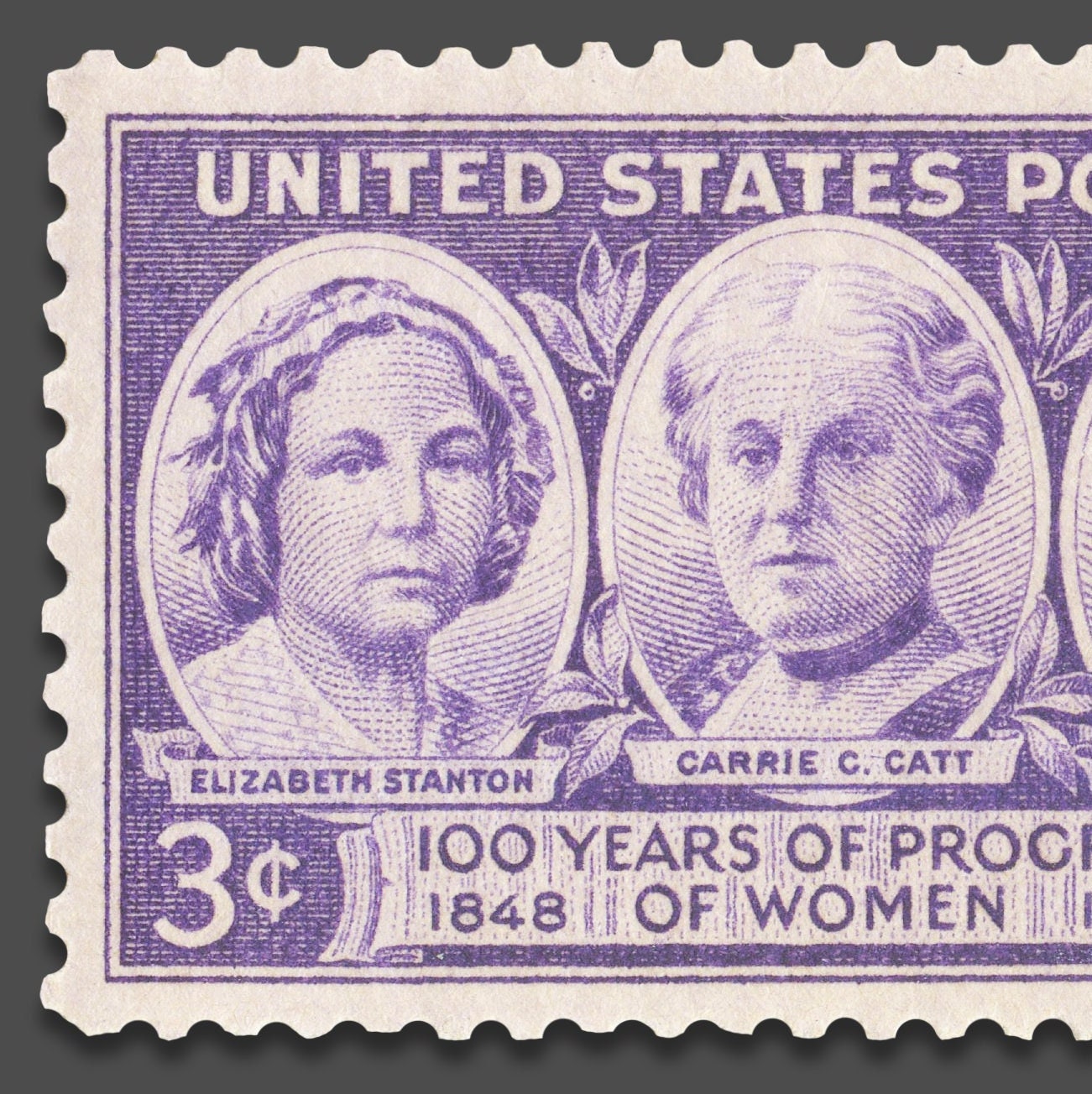 The stamp celebrates 100 years from the first Woman’s Right’s Convention in Seneca Falls on July 19, 1848, and feature feminist leaders Elizabeth Stanton, Carrie Catt, and Lucretia Mott. Over 300 people attended the convention and Stanton wrote and read a Declaration of Sentiments. Based on the Declaration of Independence, it declared men and women were created equal. Stanton also proposed the controversial resolution calling for voting rights for women at the convention.