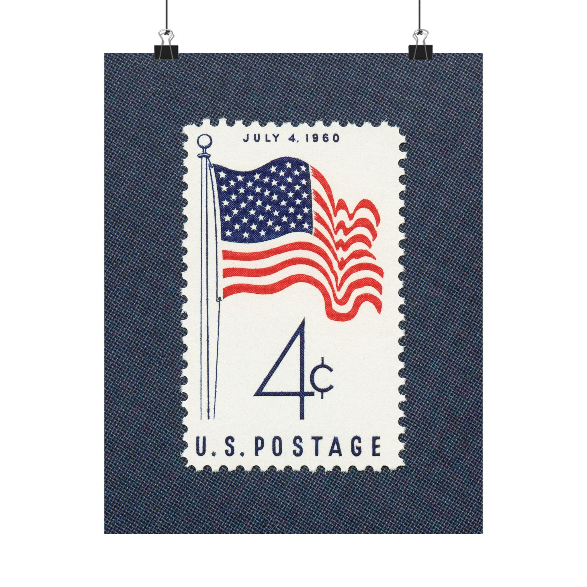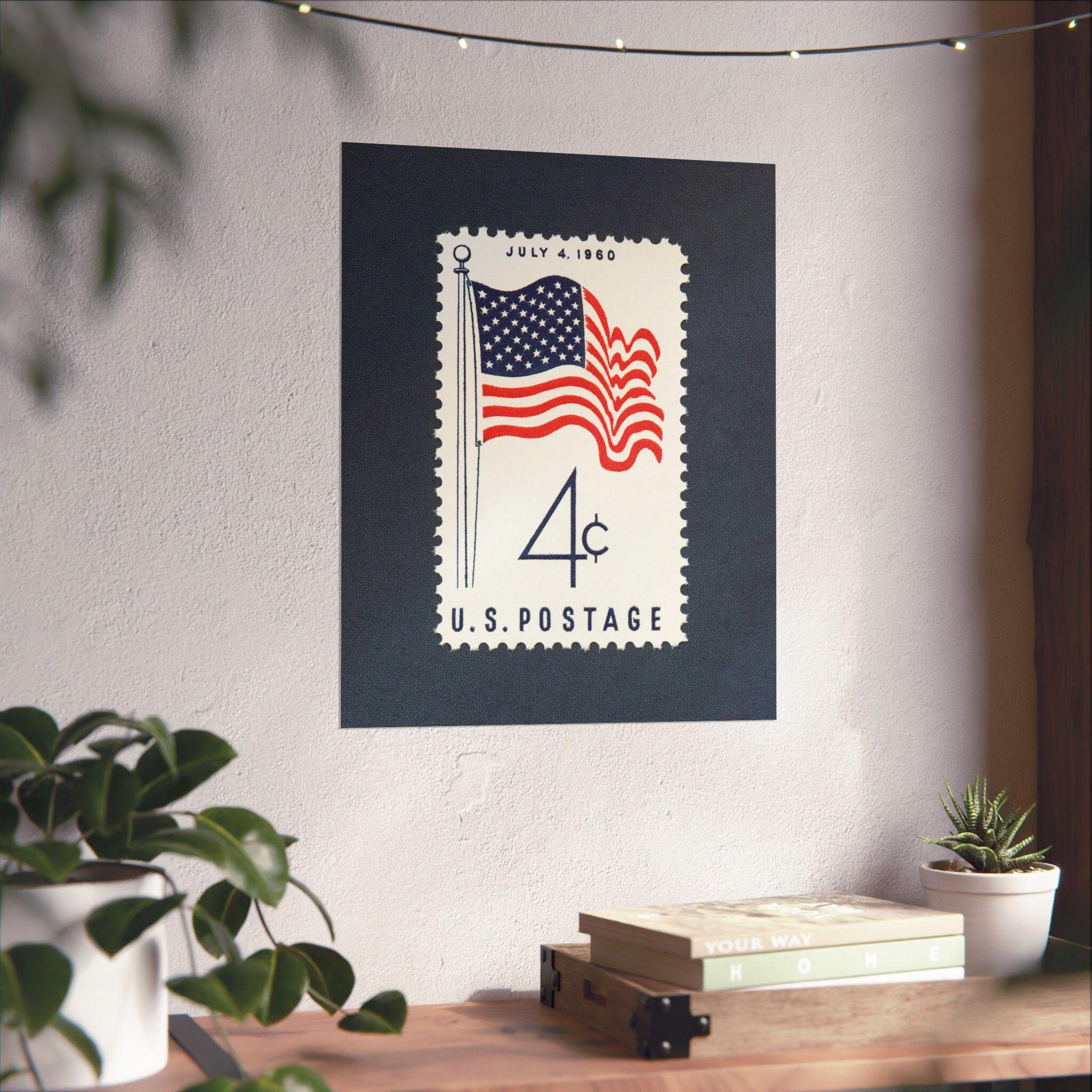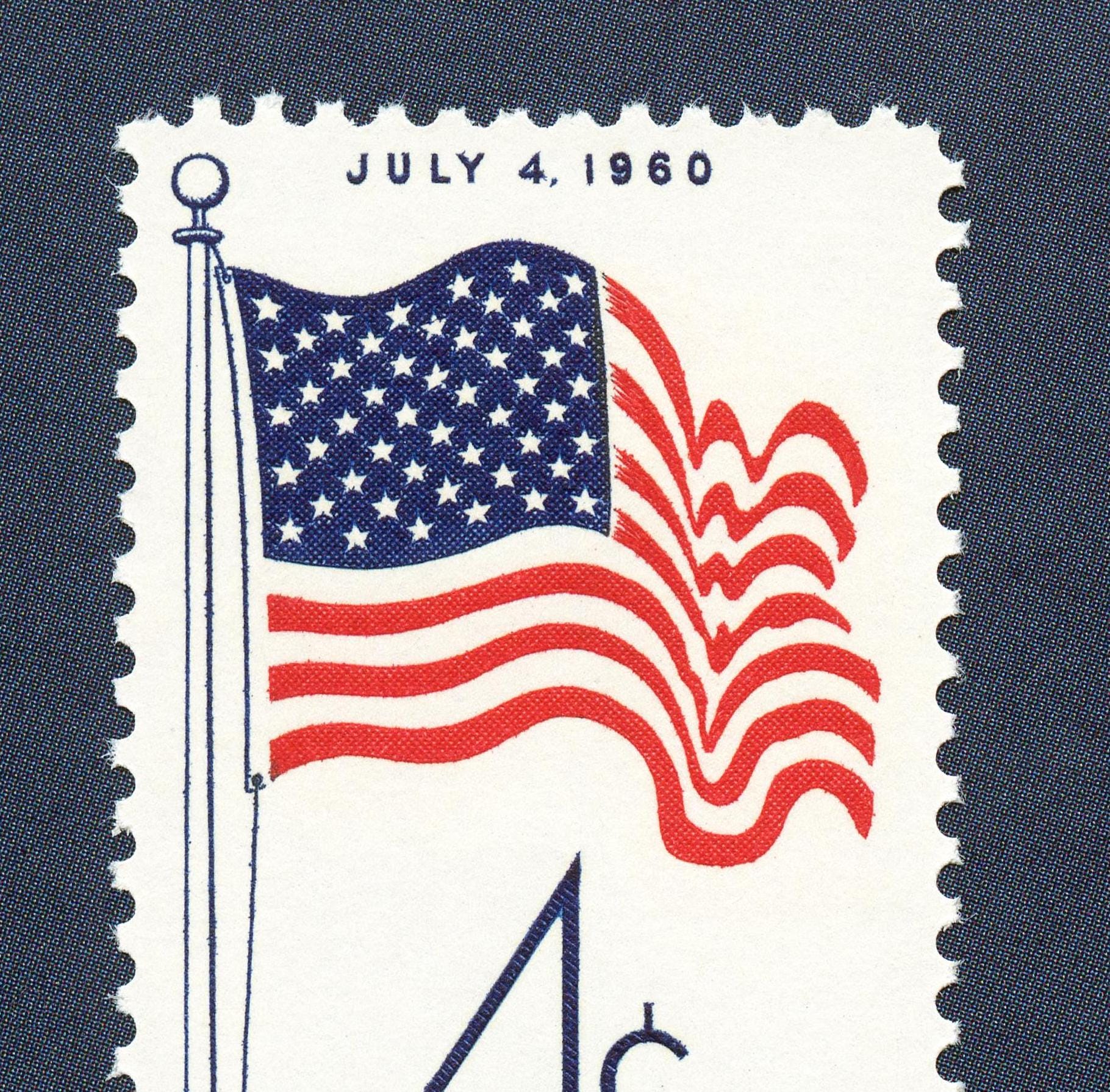 This stamp commemorates the addition of a 50th star to the US Flag after Hawaii was added as the 50th state in 1960. Add a piece of history to your home or office with this vintage stamp art print.