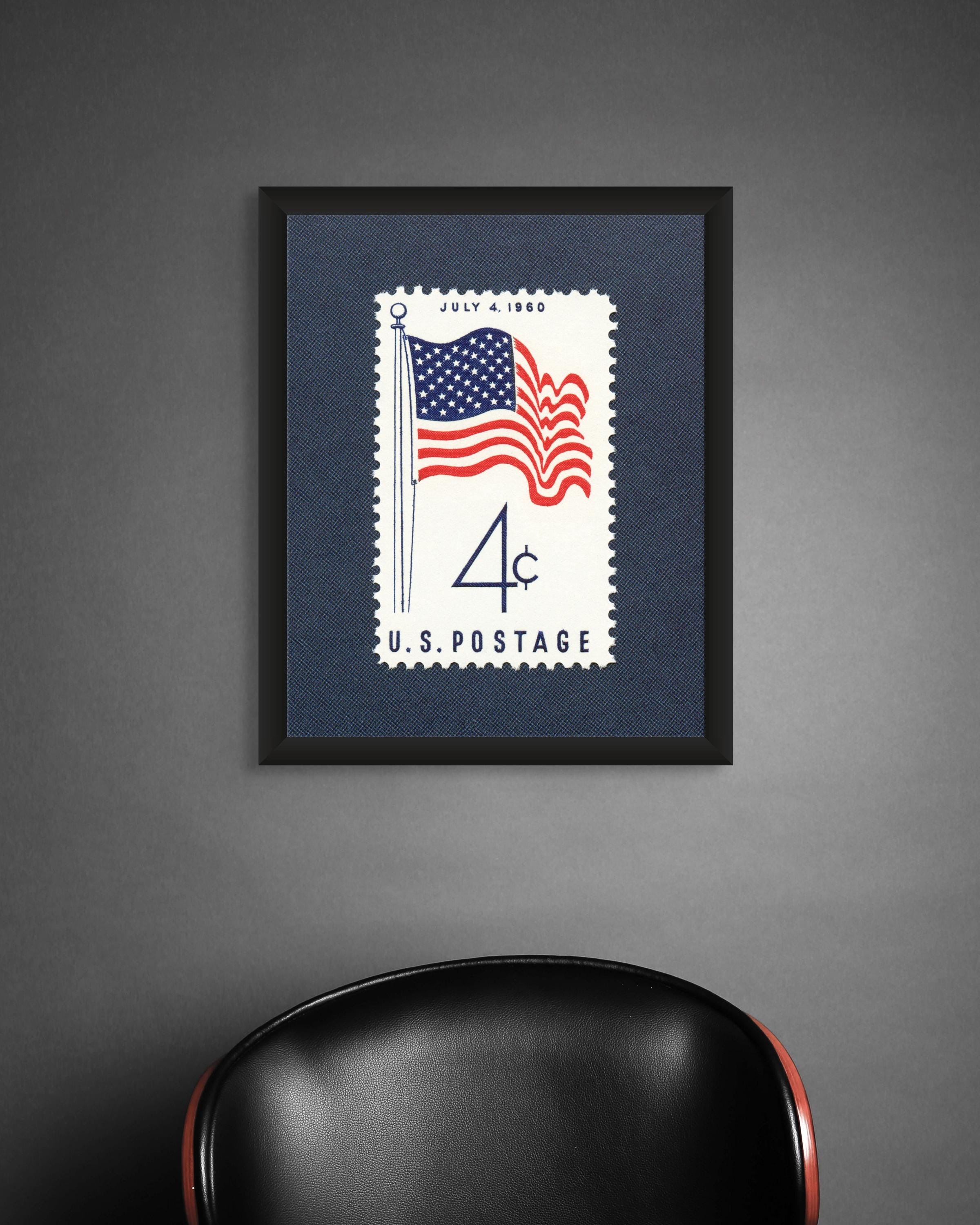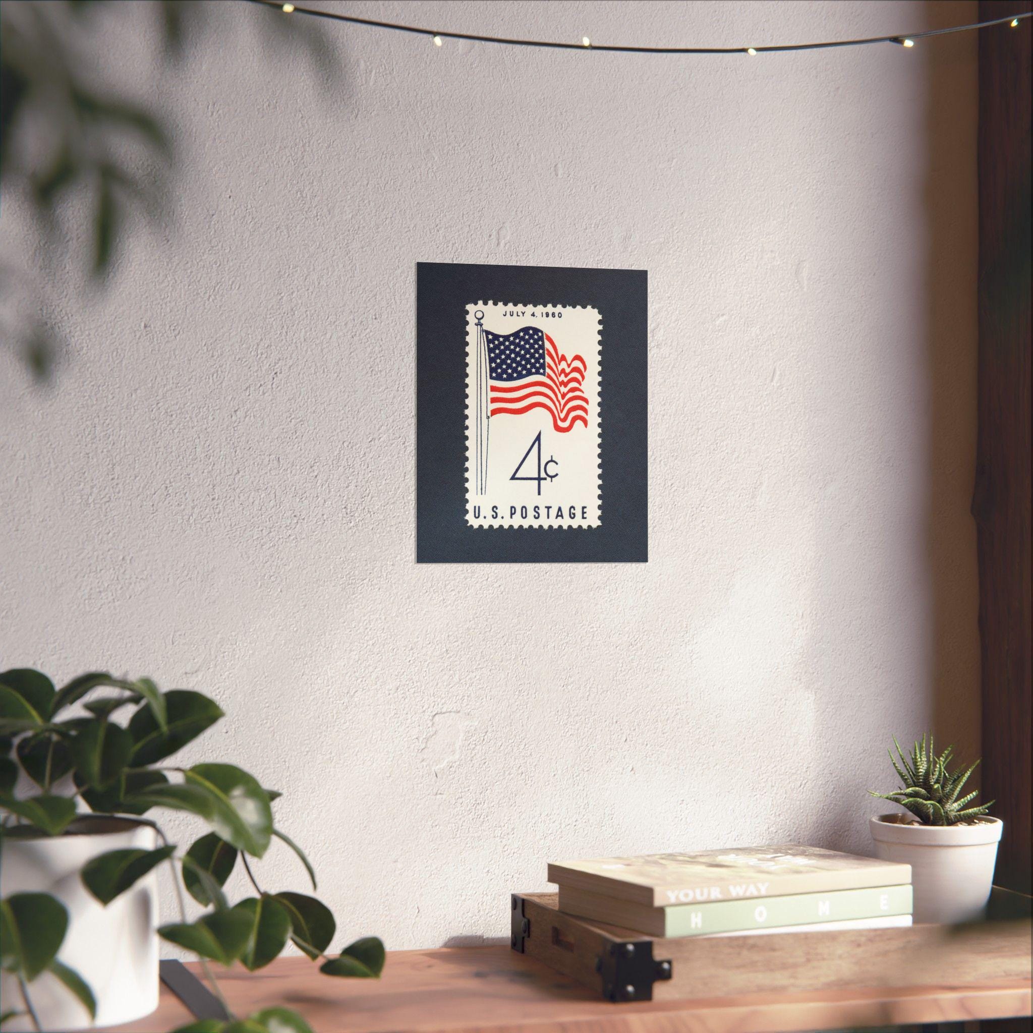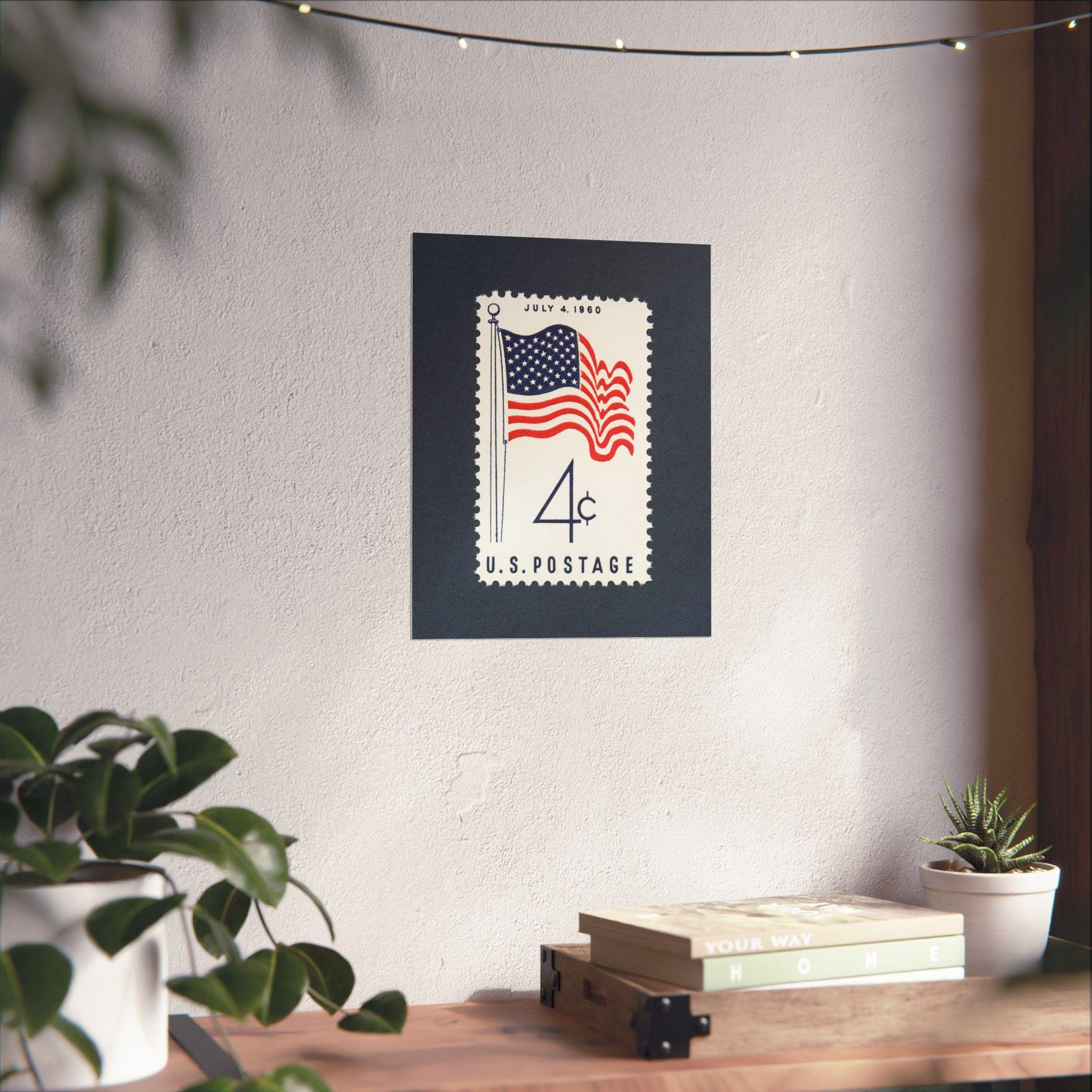 This stamp commemorates the addition of a 50th star to the US Flag after Hawaii was added as the 50th state in 1960. Add a piece of history to your home or office with this vintage stamp art print.