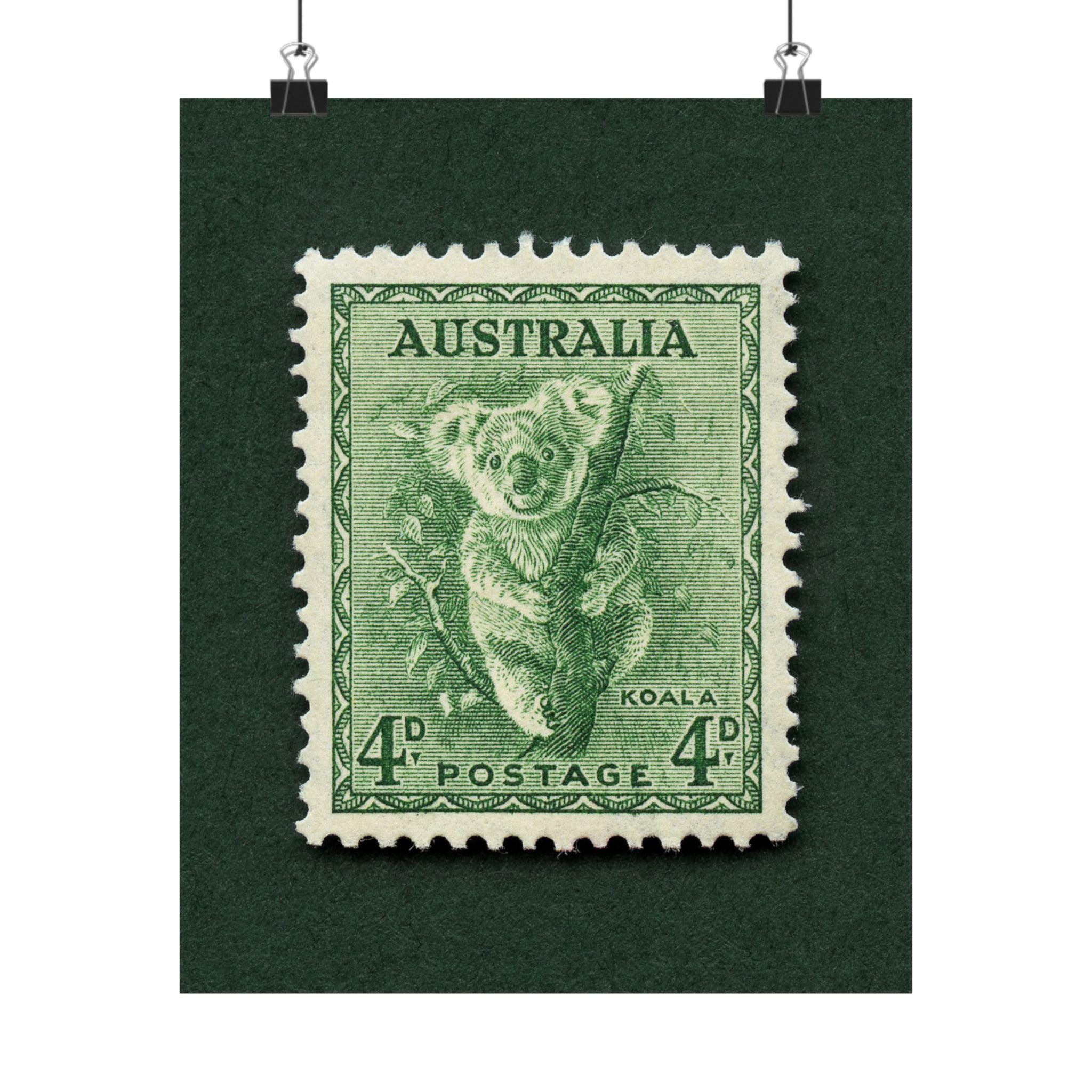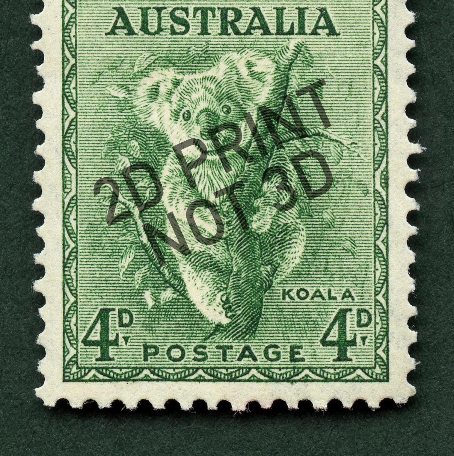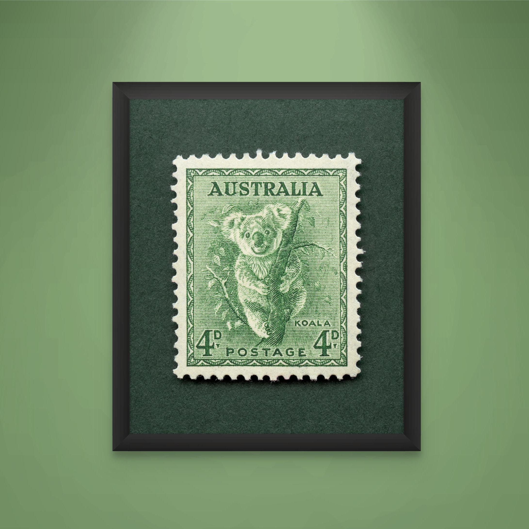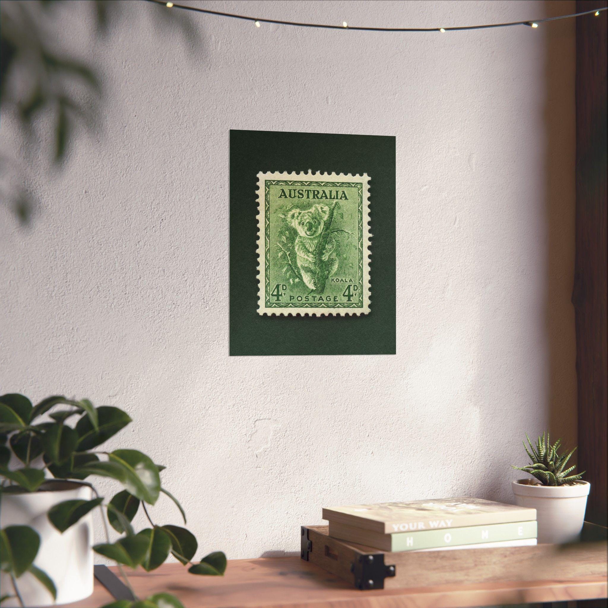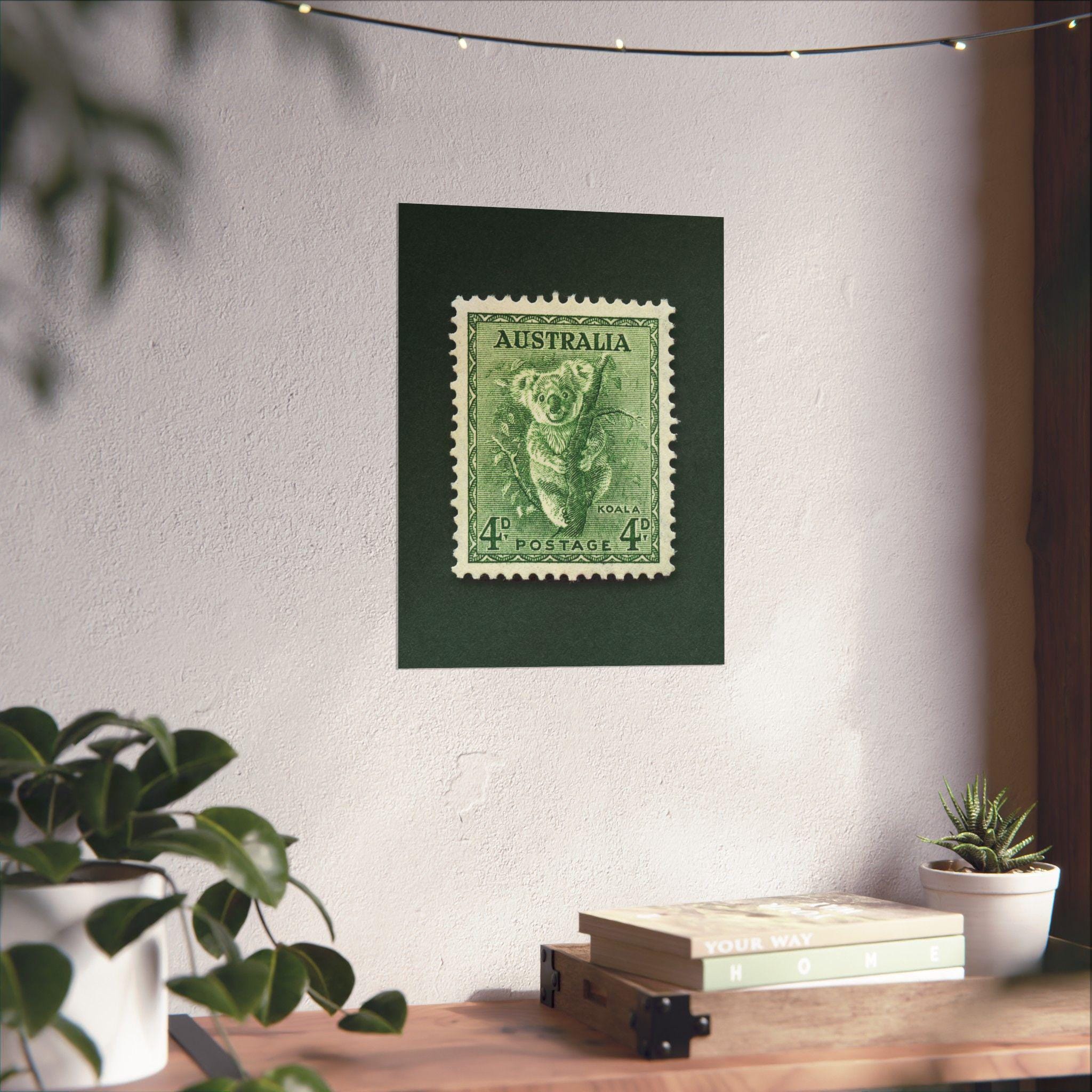 A gorgeously detailed engraving stamp from Australia featuring what else? A Koala! Add a piece of Australia history to your home or office with this thoughtfully made vintage stamp art print, made with high quality materials. Please note, the print is one single 2D piece, with a natural drop shadow from the scanning process.