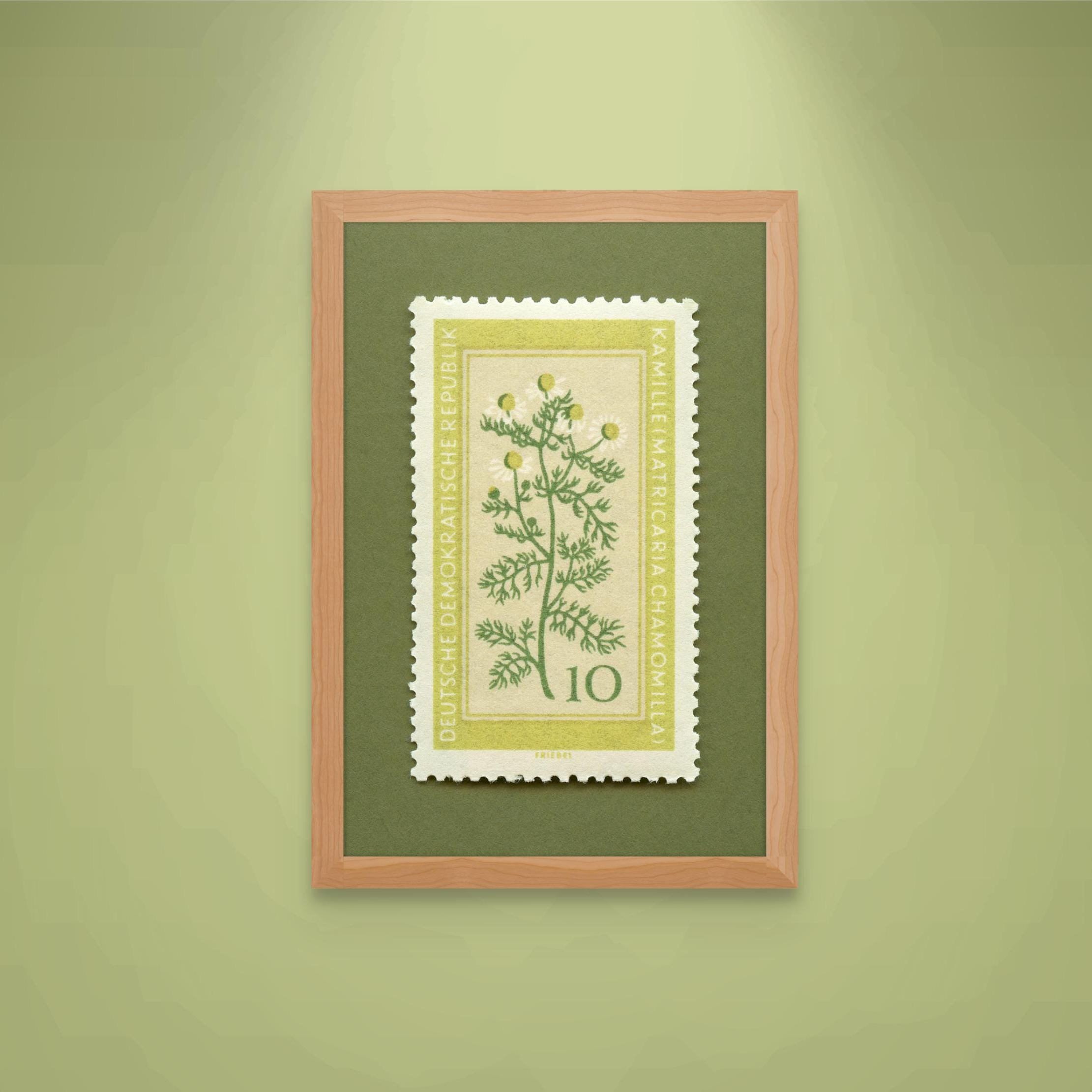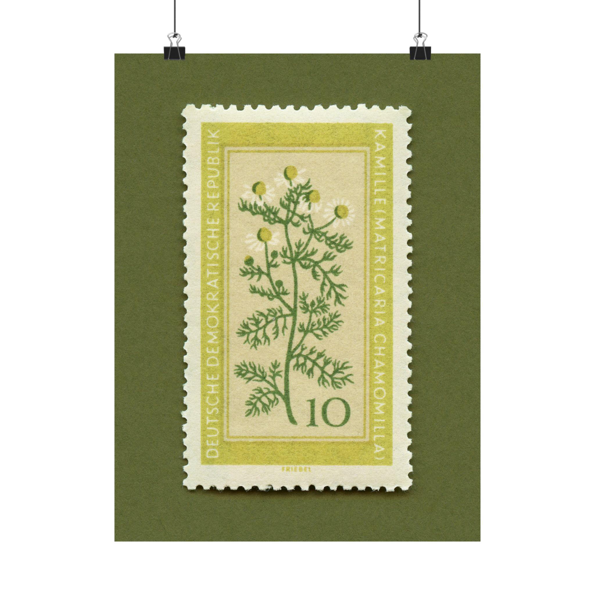 Chamomile Stamp Art Print: 1960s German Medicinal Flower