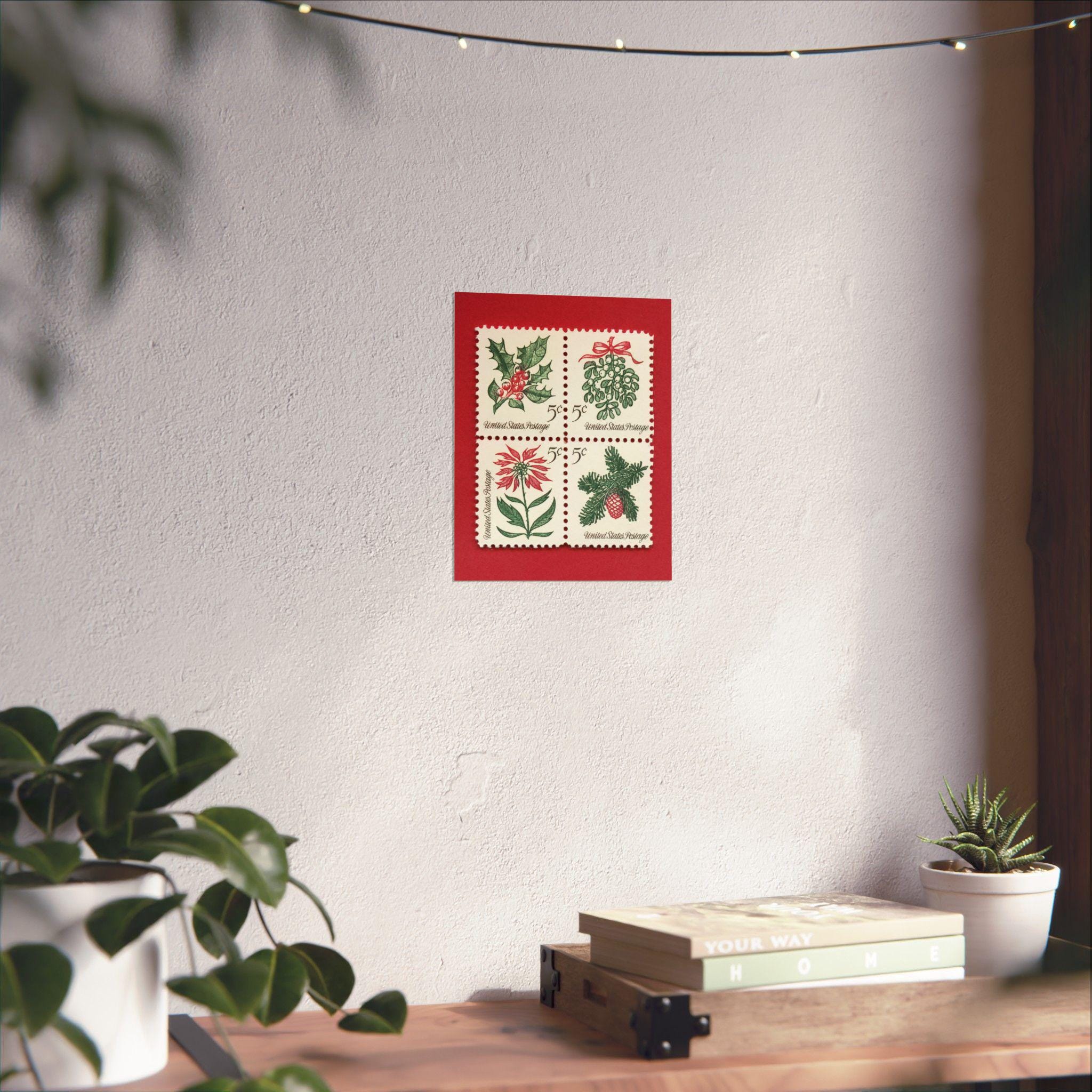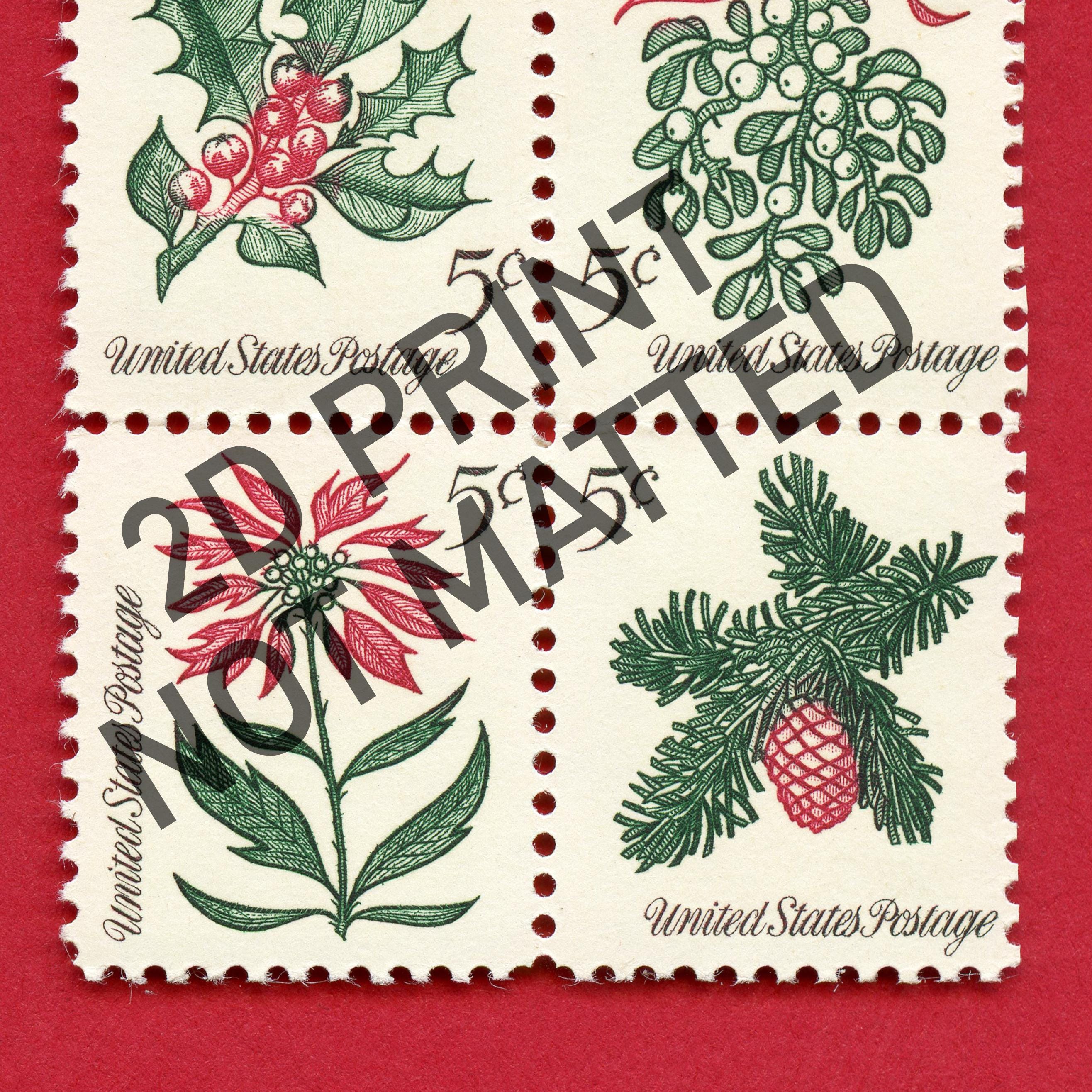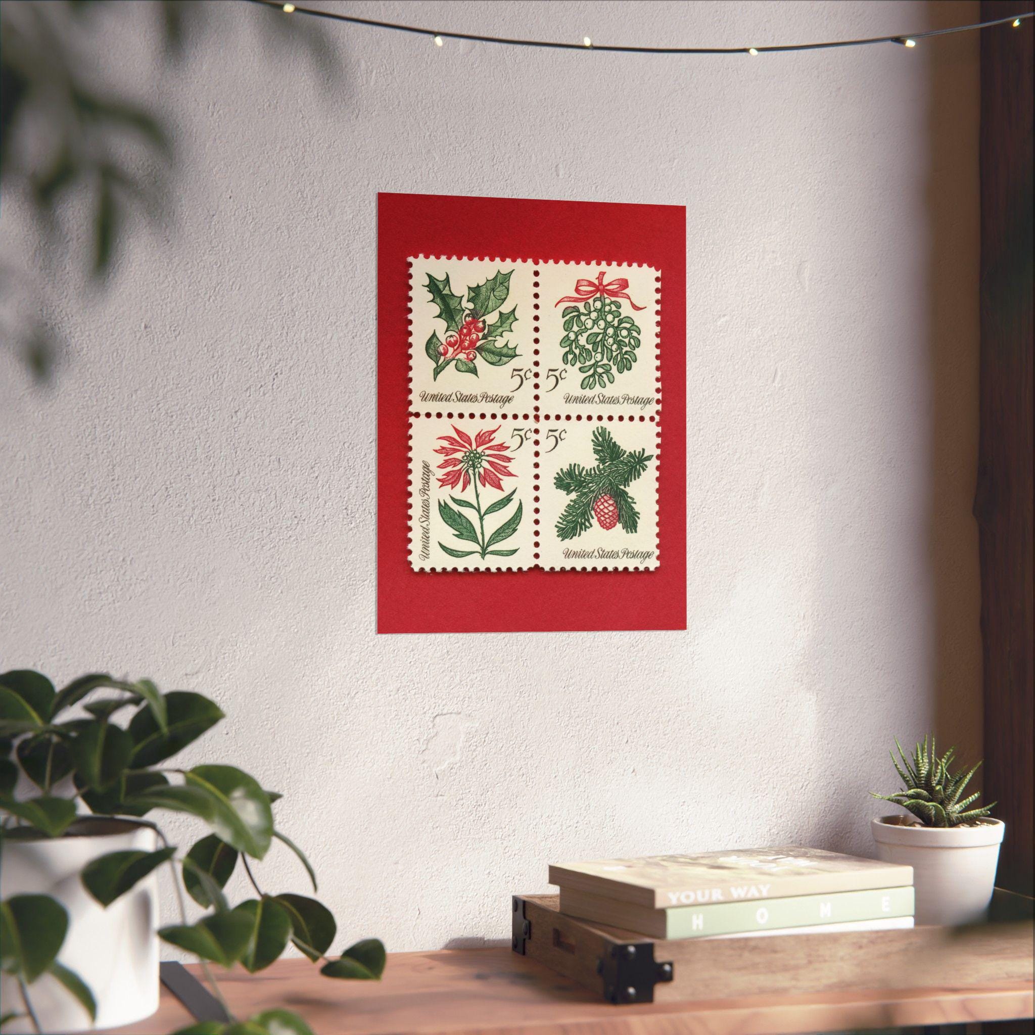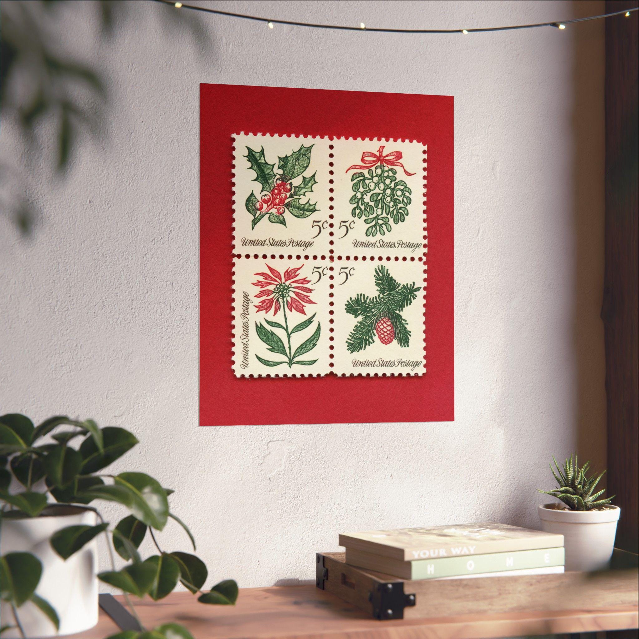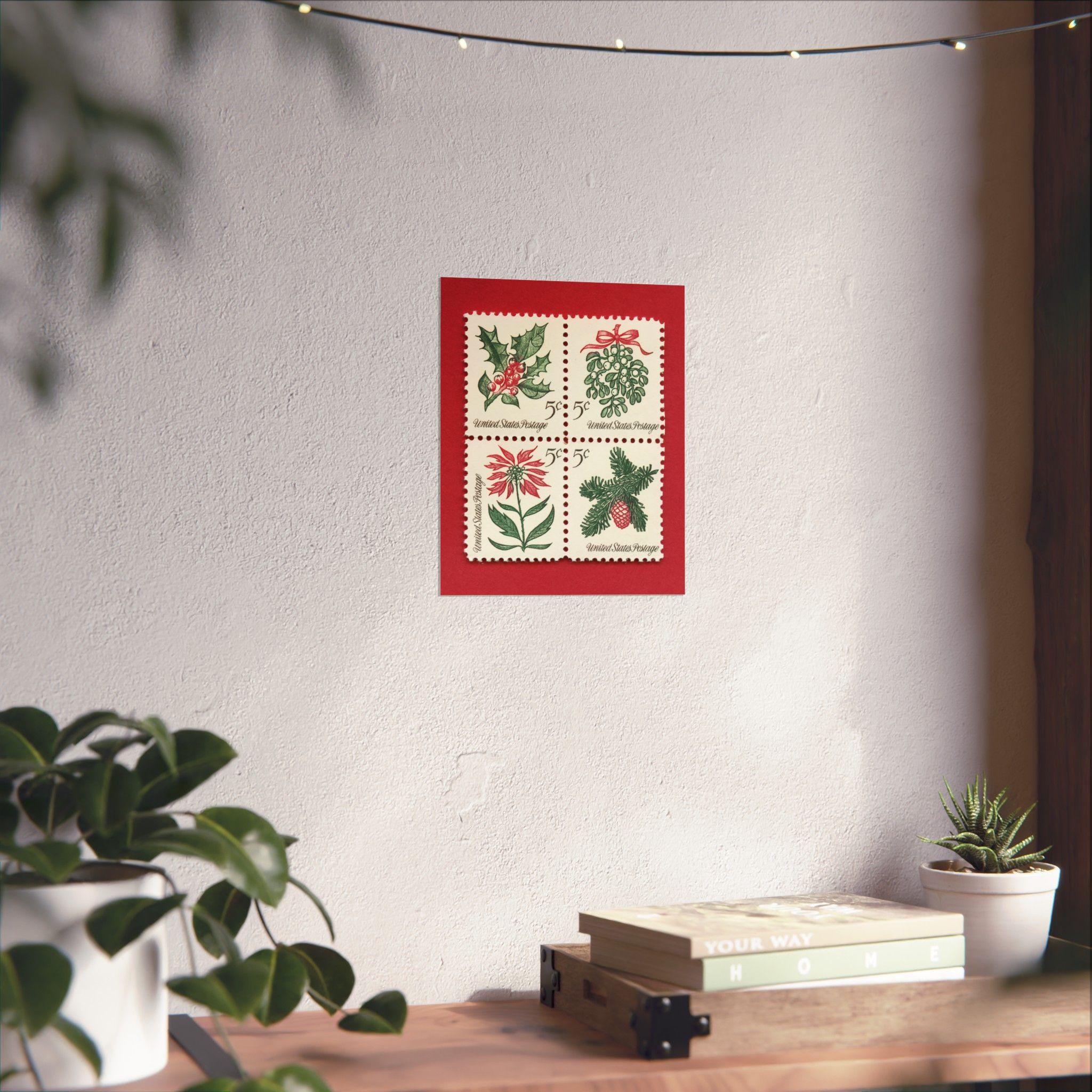 This U.S. Christmas issue was unique because it was the first time the Post Office had printed more than one stamp design on one sheet. This set was released in 1964, and was the third ever Christmas stamp ever offered. Add a piece of of history from a bygone era to your home or office with this carefully crafted vintage stamp art print. Please note, the print is one single 2D piece, with a natural drop shadow from the scanning process.